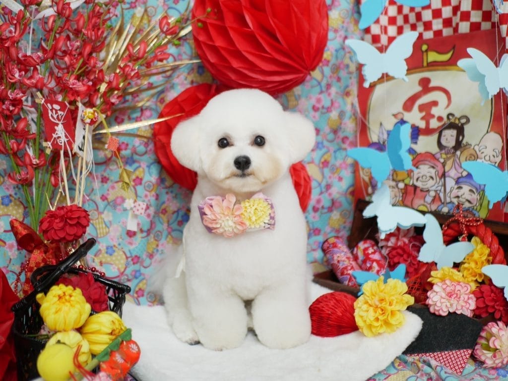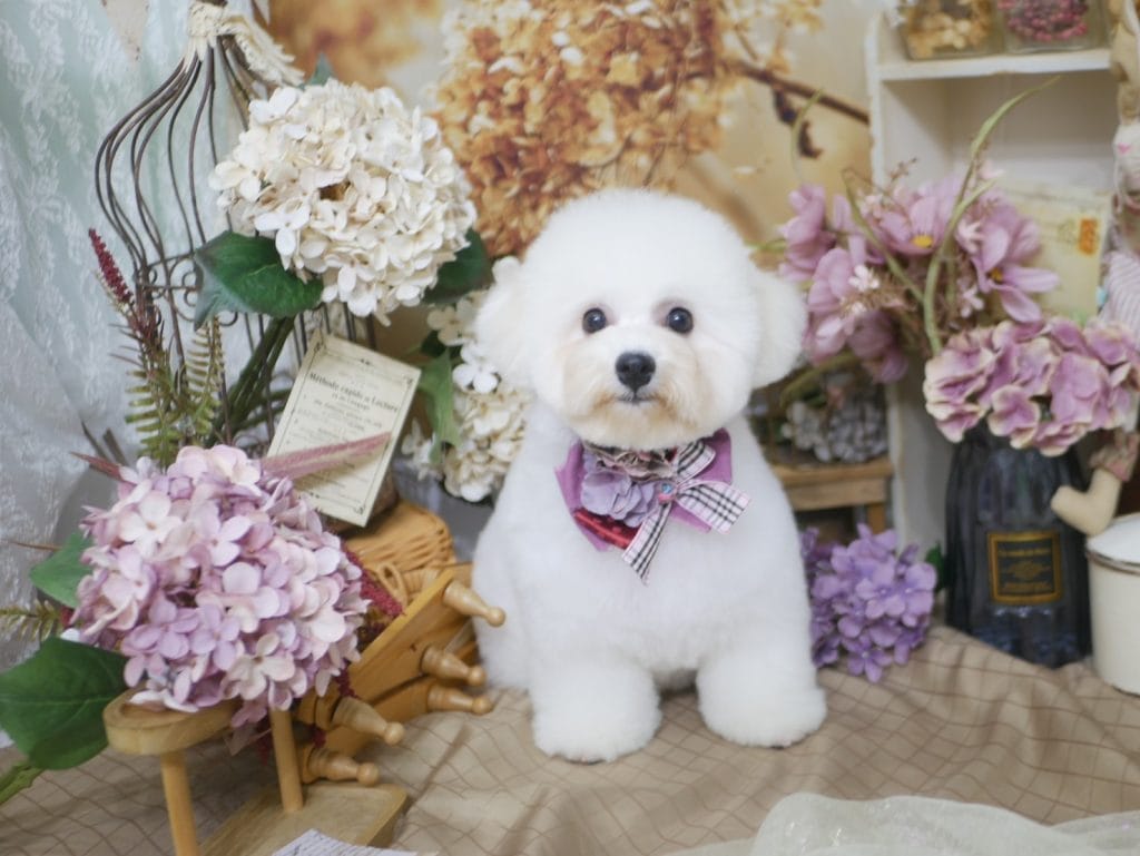 名前の由来は父ちゃんがビションフリーゼを知るきっかけとなった、知人のワンちゃんの名前から1文字をどうしても貰いたくて、色々考えた結果の名前です。