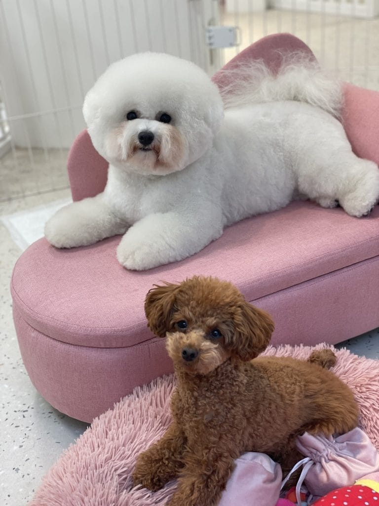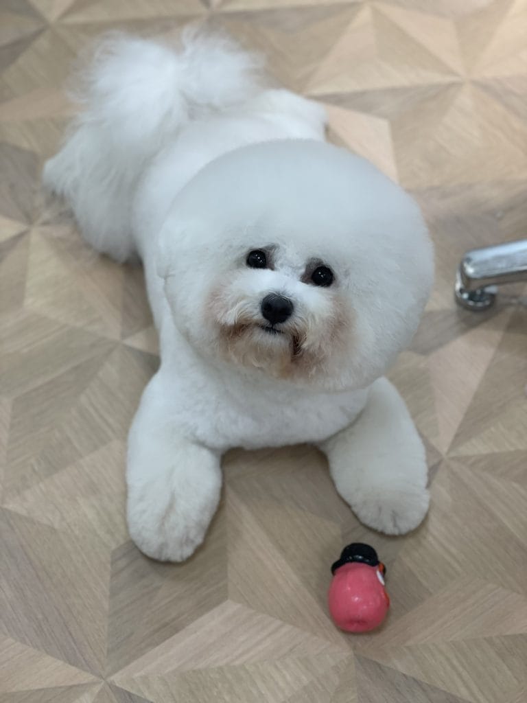 仕事は在宅勤務でしたが、ノアさんの面倒を見るのが忙しすぎて、全然集中出来ずで、それも大変でした。それでも、SNS上で同時期にビションを迎えた方、先輩方、知人のトリマーさんなどに相談や話が出来たのでなんとか一番大変だった時期を乗り切れたかもしれませんw