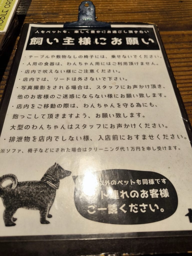 夜遅くまでやっていて、店内も広々しているので使い勝手は良さそうです。ただし、4階にあるのにエレベーター無しなのと、喫煙OKなので気になる方はいるかもです。自分が行った際はそんなにタバコを吸っている方もおらず、煙くて臭いということは無かったです。ワンちゃん用のお水とカフェマットも出していただけます。