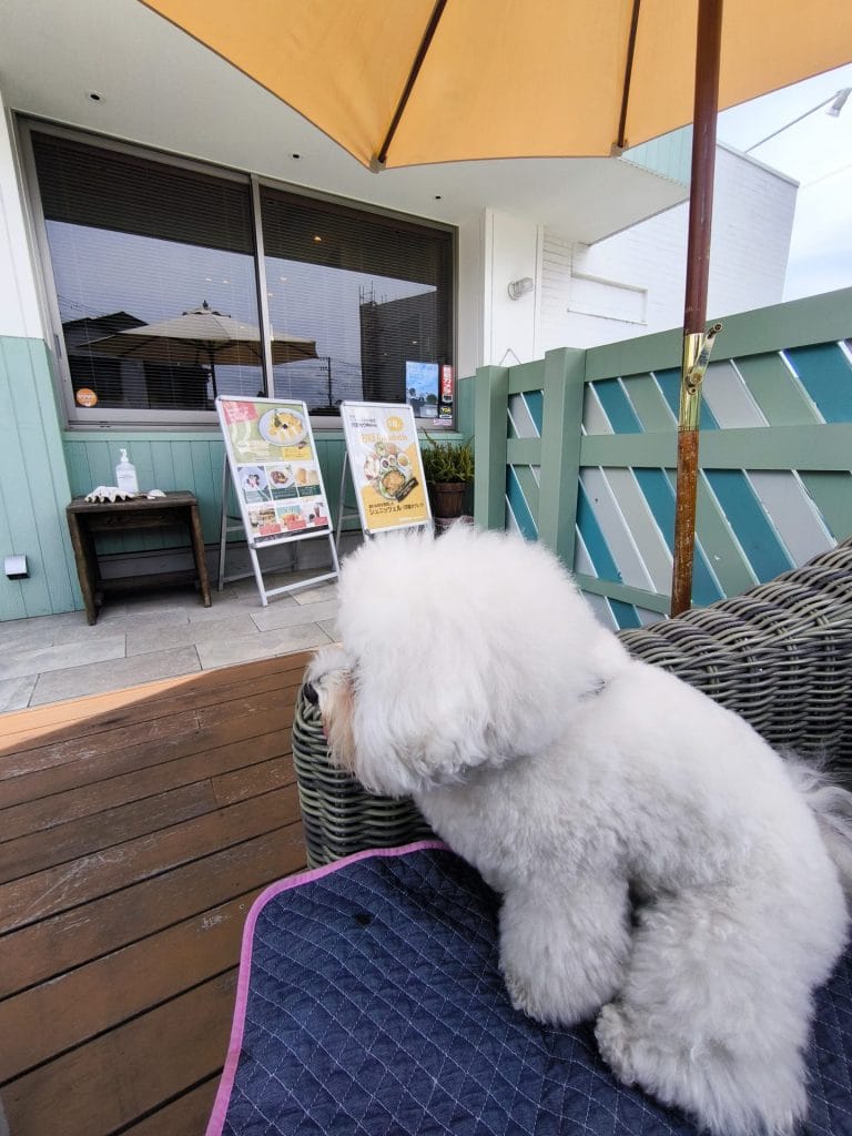 テラス席ですが呼び出しボタンもあり、会計も現金であれば席でやってくれたので1人犬連れでも安心です。通し営業なのもとてもありがたいですね!