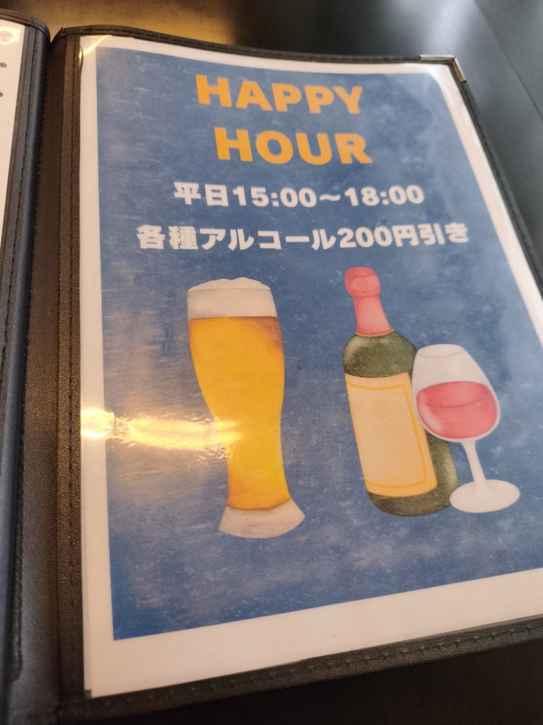 座席にはリードフックもあります。平日15時から18時まではアルコールが200円引きというのも酒飲みには大変ありがたい!