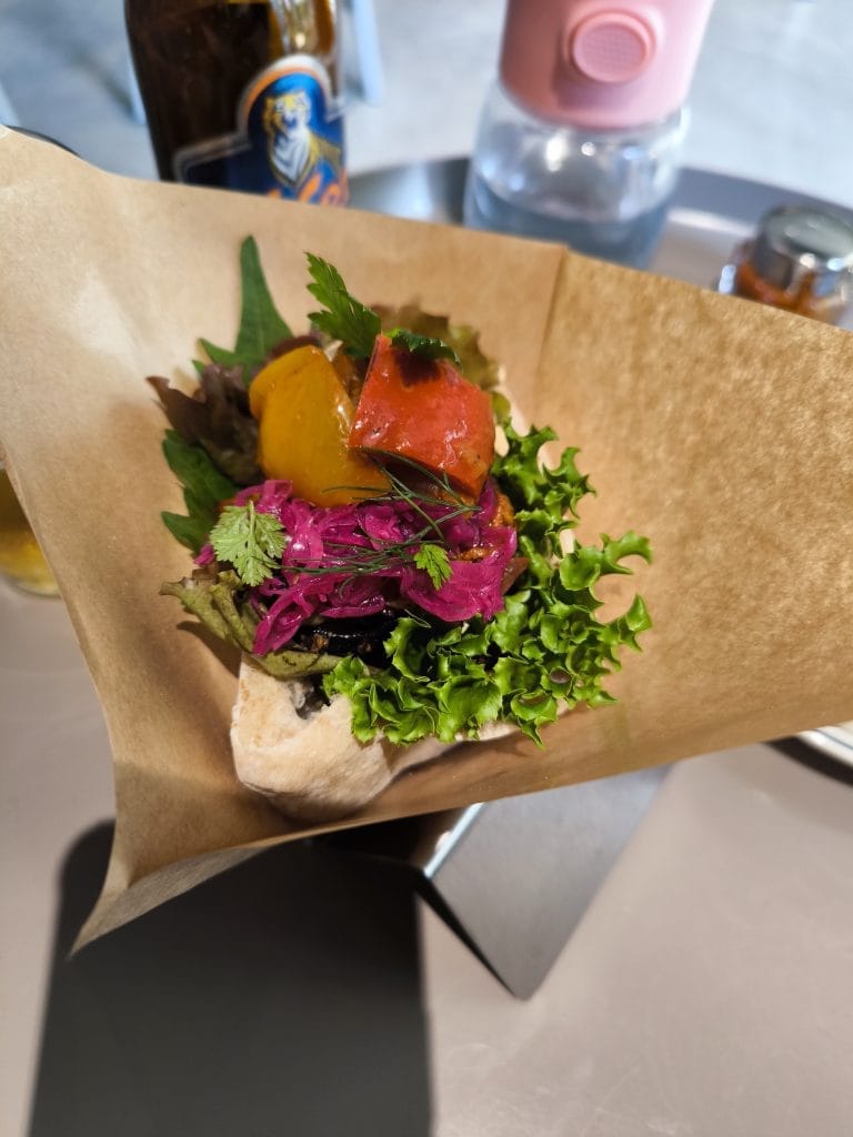 アイスコーヒーもキャロットケーキも、もちろん美味しかったけど初のファラフェルを食せたファラフェルピタサンド、彩りも提供された姿もスタイリッシュ且つ、すっごく美味しかった!