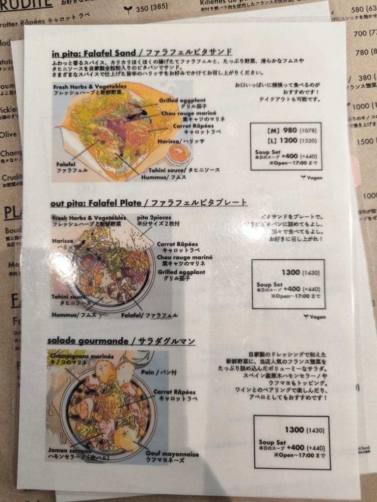 ファラフェルサンドと、スープとワインいただきました!全部美味しかった....。セットのスープがちゃんと美味しかったので感動しました。肝心のファラフェルも美味しい!