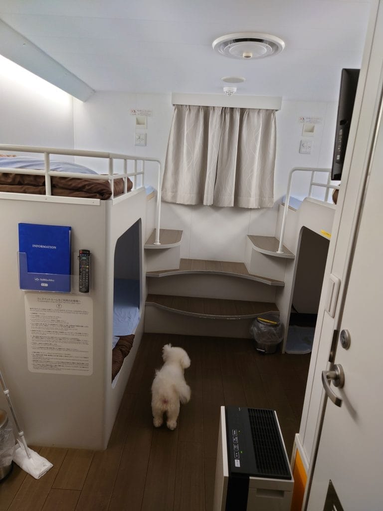 今回の記事でメインとなるフェリーで行く方法です。フェリーでもケージが置かれたペット室に預けるパターンと、自分たちと同じ部屋に泊まれるパターンがあります。今回はペットと同じ部屋に泊まれるフェリーがメインになります!