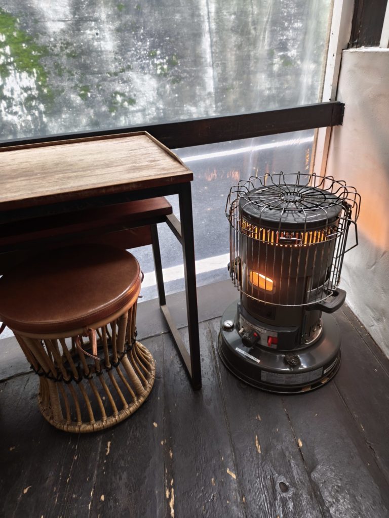 テラス席といっても屋根もついているし、冬は暖房もあります。夏は扇風機だけなので、真夏はさすがにつらいかもしれません。