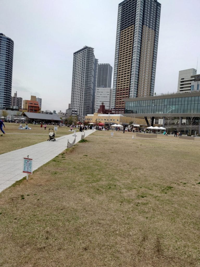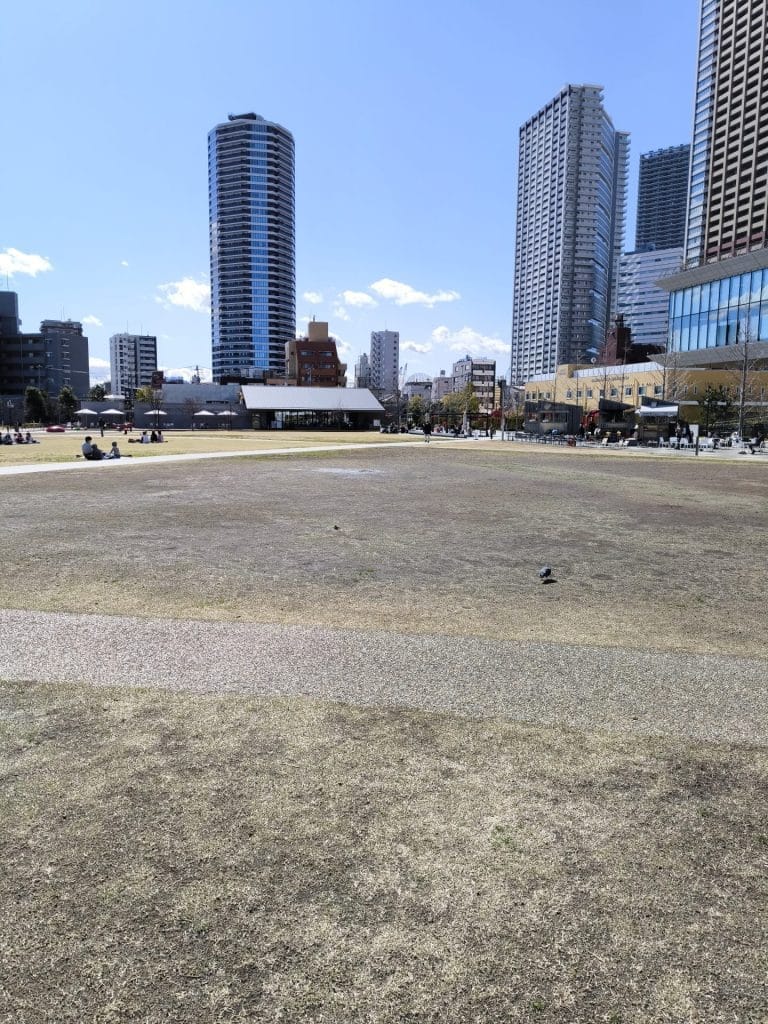 もともとは造幣局東京支局だった跡地に、2020年12月に誕生したそうです。平常時は区内最大の芝生広場が区民の憩いの場として親しまれていますが、災害が発生した場合は区の防災拠点として、ヘリポートや救援物資の受入・集配場所等として機能します。