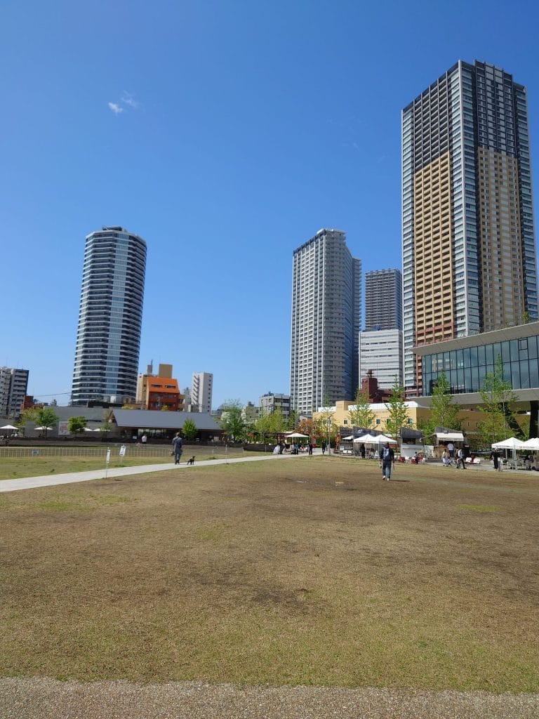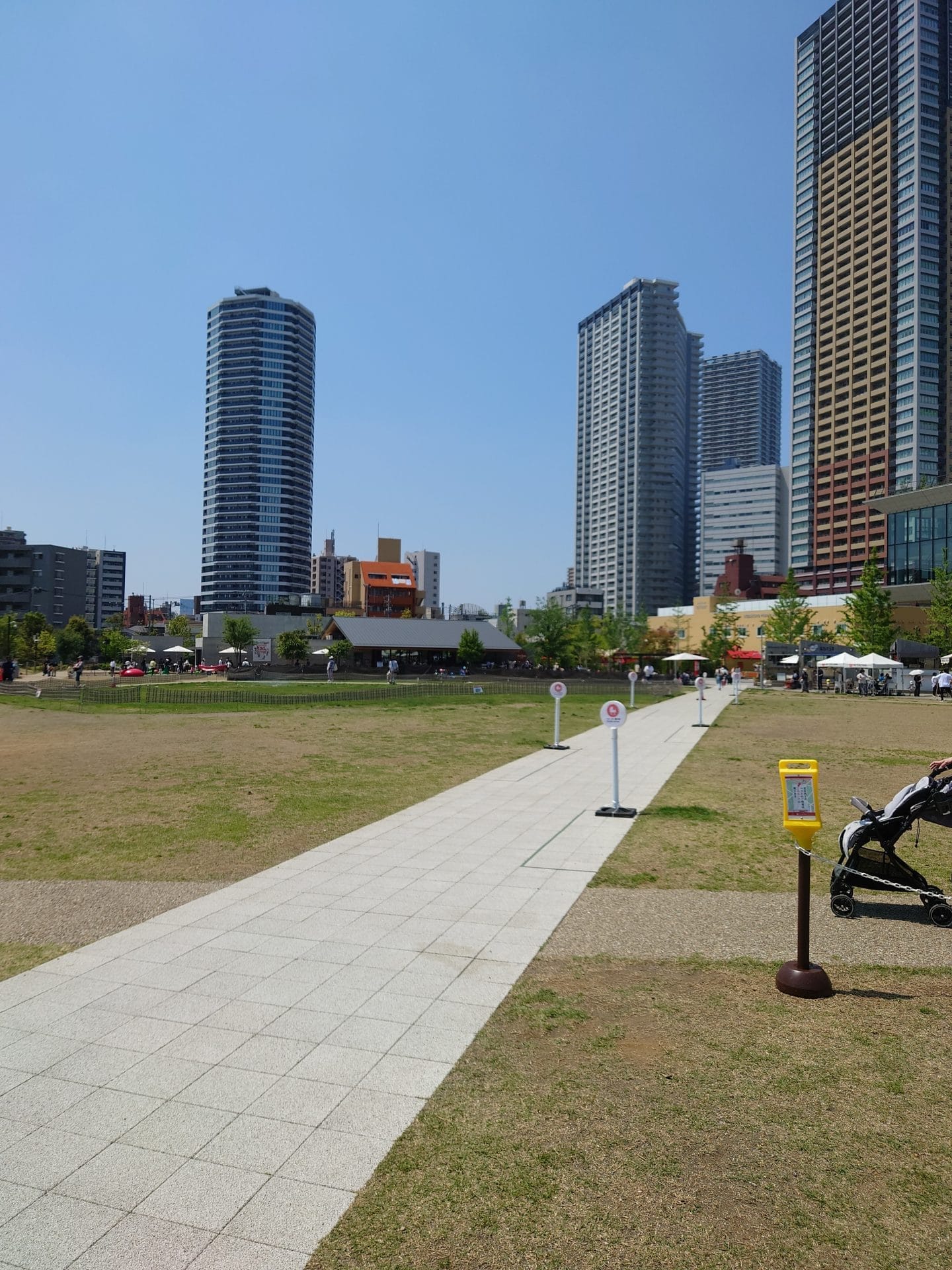 高層マンションが建ち並ぶ中、開放感があり緑も沢山あり、座れる場所も沢山用意されていますし、喫茶店やキッチンカーもあります。小さな子供も安心して遊べるスペースも確保されていますし、大人もくつろげる公園です。