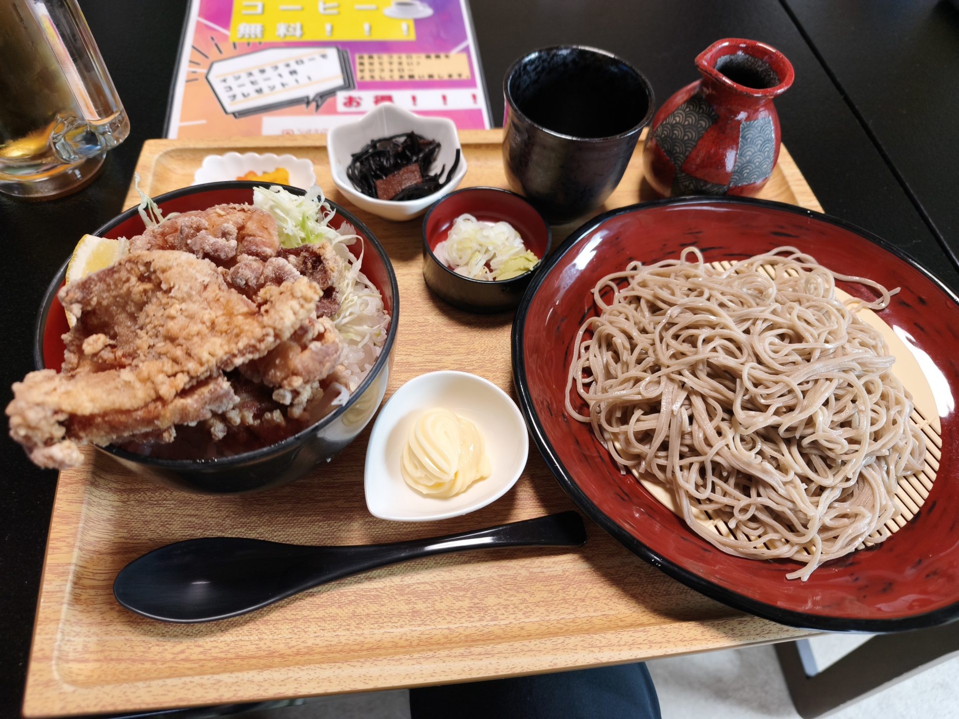 うどんやそばの店と思って入ったのですが、メニューがとても豊富です!海鮮丼なんかもあります。そして見ての通り、ボリュームもすごい!お値段もお安め!大型犬も店内に入れるようです。
