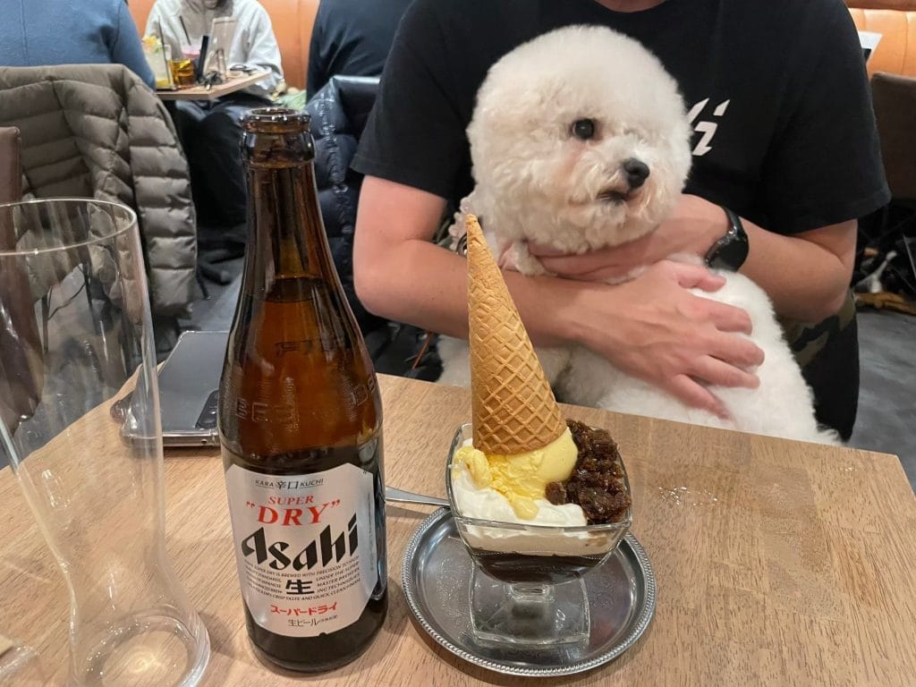 メニューには食べ物もお酒もあって豊富です。犬用のフードメニューもあります。