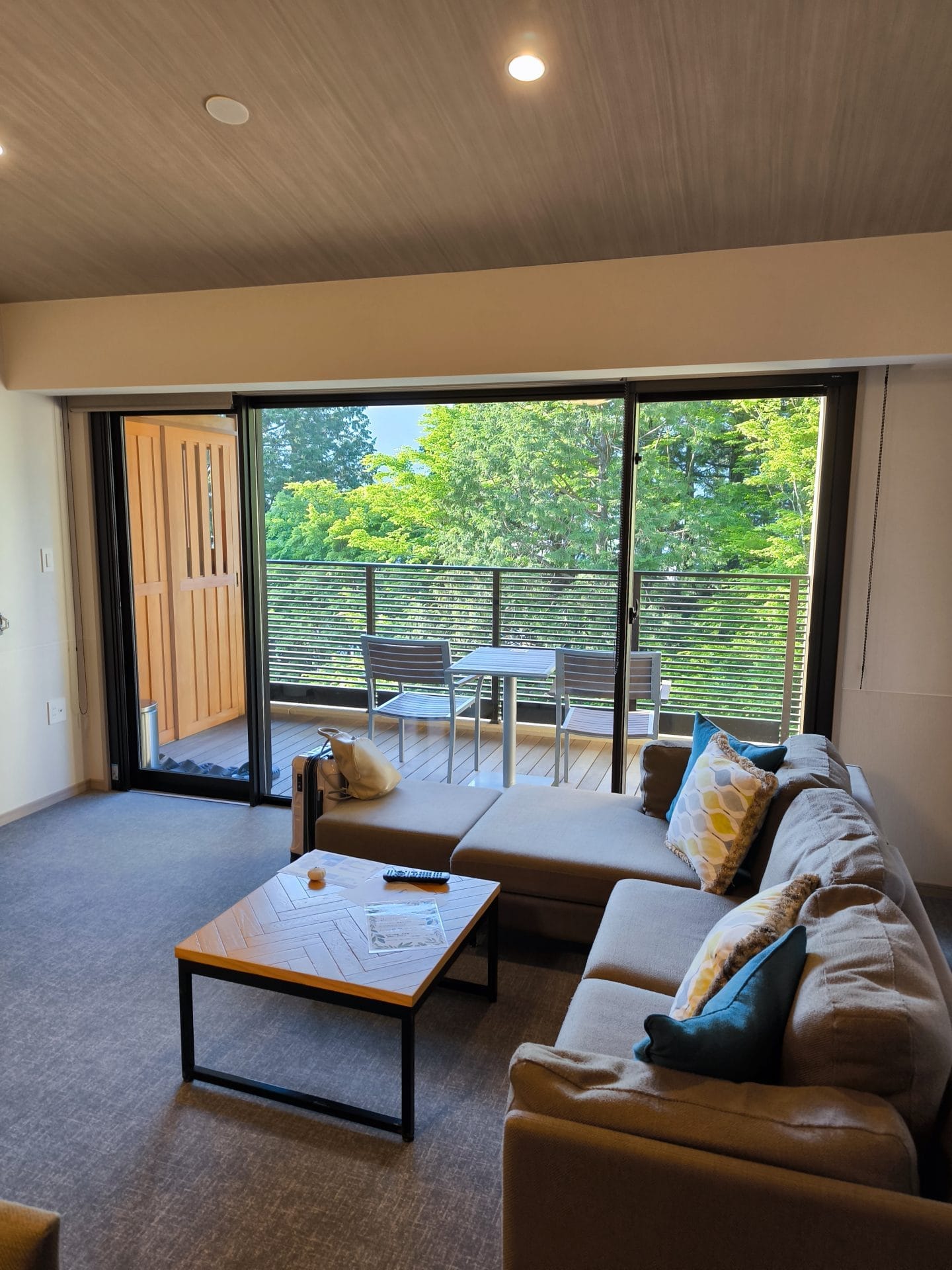 ノアさんの誕生日に両親を箱根に招待して箱根に温泉旅行にしようと決めたので、せっかくなら静かでゆっくり過ごしたいと思いこちらへ。結果、箱根仙石原に関して言えば、3階にしたので上階も無いのであれですが、他の部屋の音は全くといって聞こえなかったです。テラスに出た際に、外のプライベートドッグランから他のワンちゃんの吠える声が時々聞こえたくらいでしょうか。