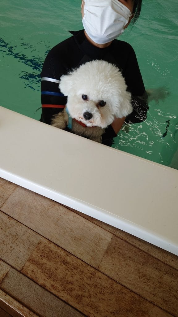 アクアフィットネスで唯一の残念なのが、自分でドライしないといけないことです。もちろん、立派なグルーミングルームはあります。でも、ビションフリーゼの飼い主としては、有料でもいいから乾かしてくれると助かるw