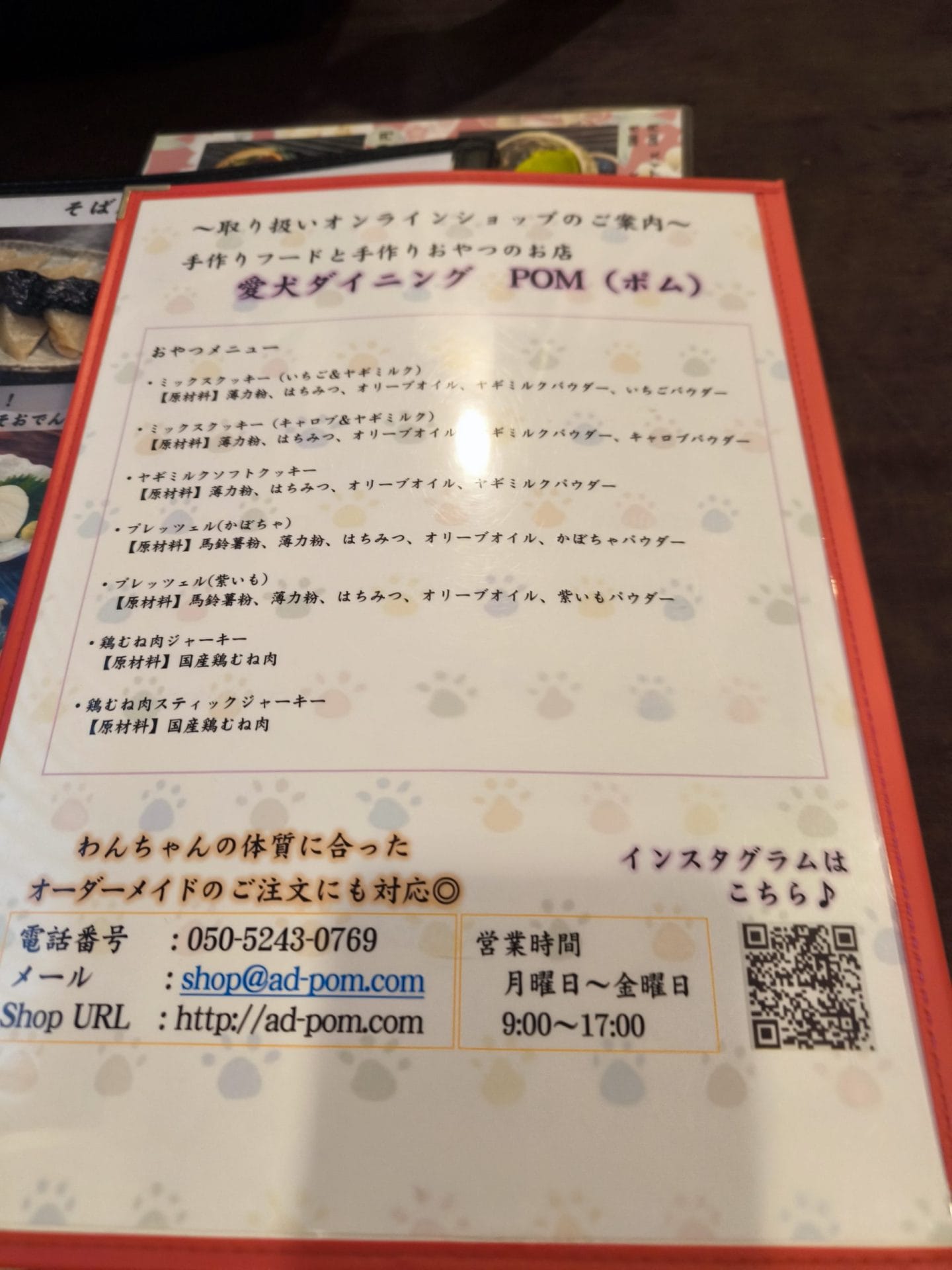巣鴨の地蔵通り商店街にある、犬店内OKの古くからあるお蕎麦屋さんです。愛犬用にお水を出してくれたり、カゴや足ふきタオルなども用意されています。愛犬用の手作りおやつや、お蕎麦もあります!