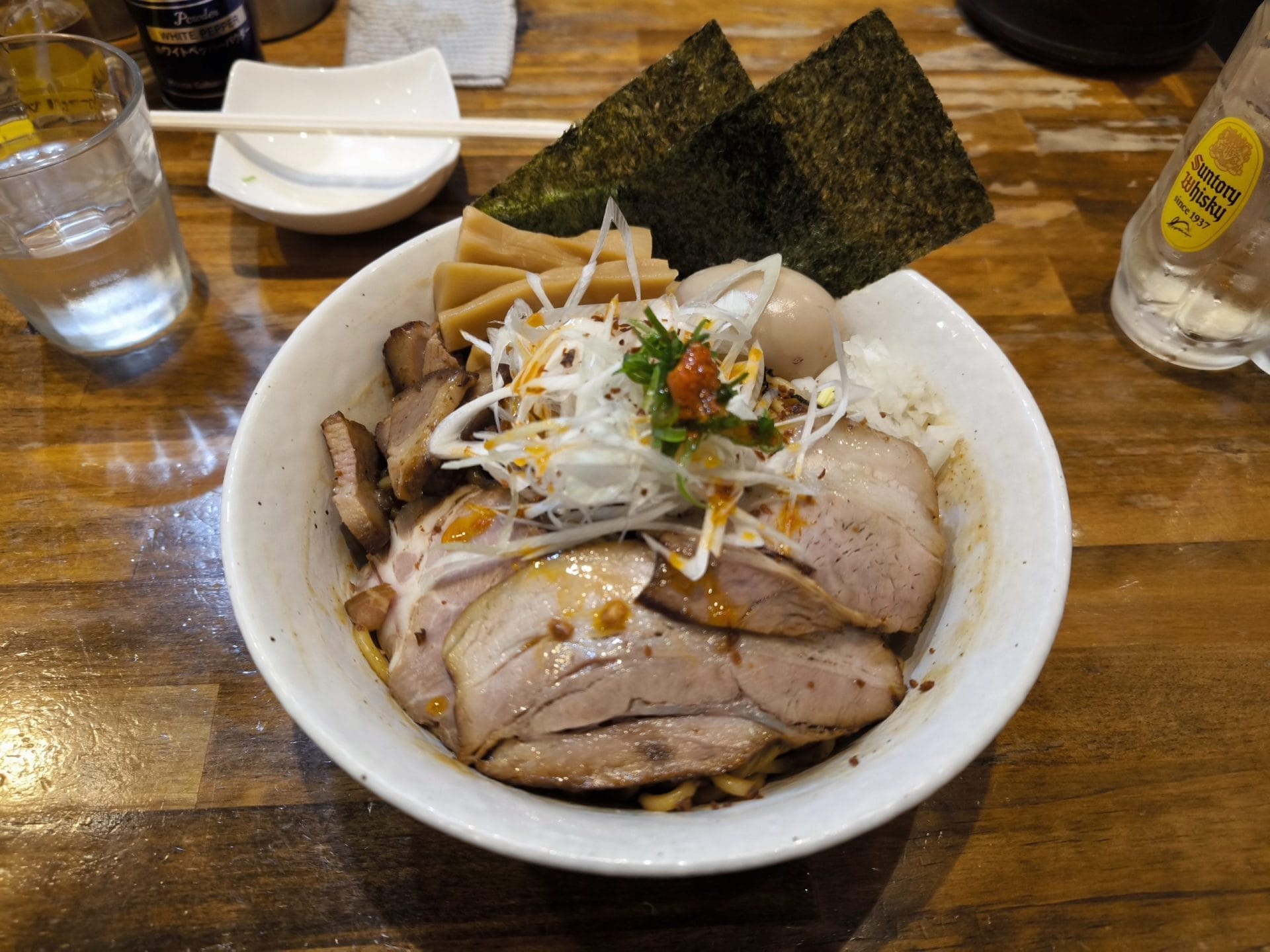 江戸川橋にある今は無き池袋の「BASSOドリルマン」の3号店だったお店を譲り受ける形で独立オープンお店とのことです。国産小麦を使用した麺、無添加、無化調のラーメンやまぜそばを提供しています。