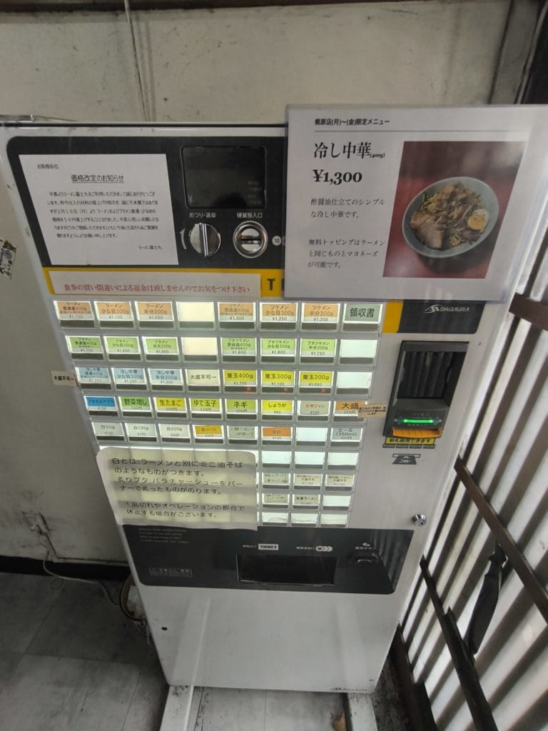 普通盛り400g、少なめ300g、半分200gで食券購入時に選択可能です。さらに大盛り用の食券もあります。
