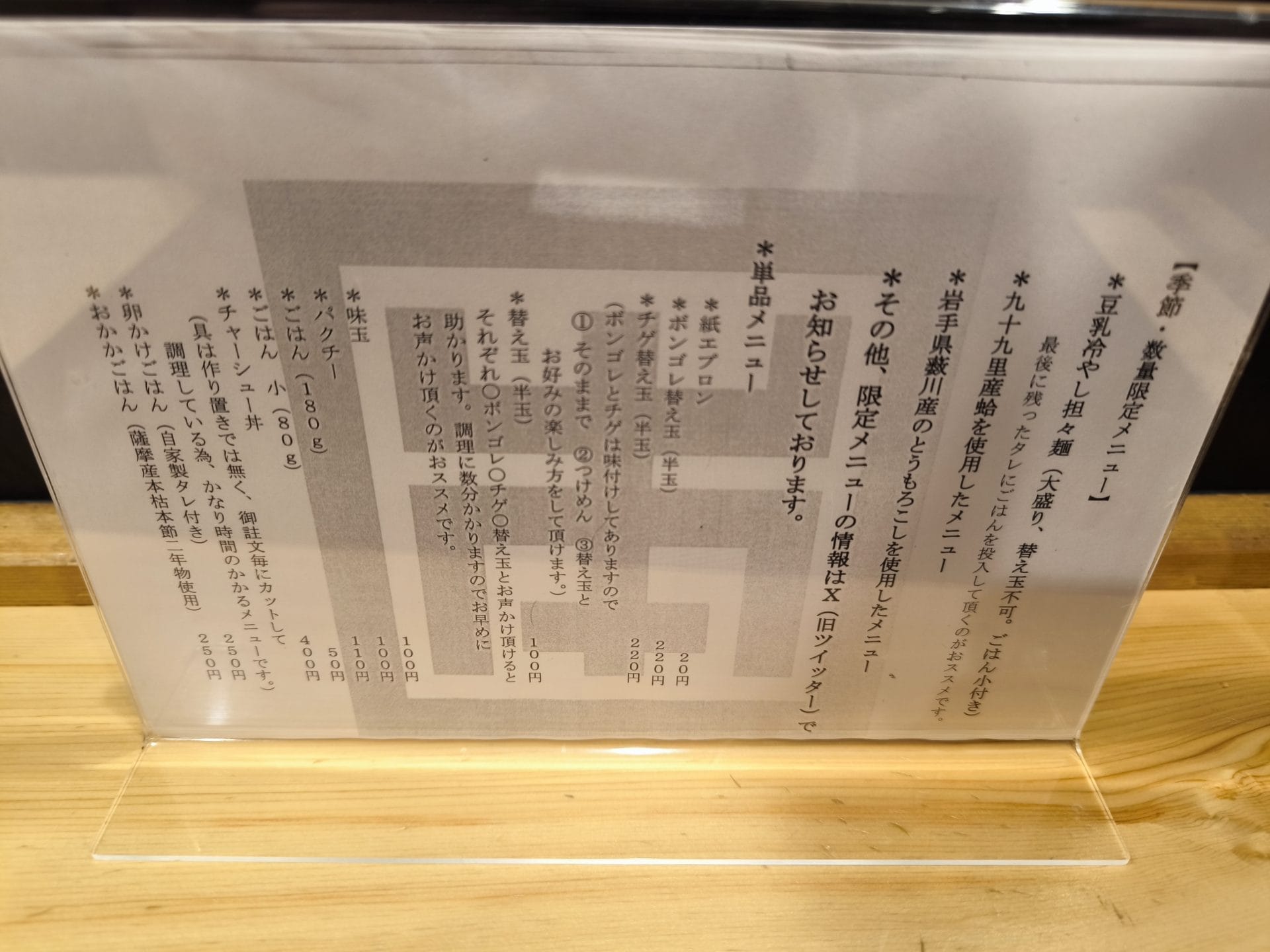 一番人気は「特製しお」ラーメンだそうです。それ以外のラーメンの種類も豊富なので、ここに来た際はどれにするかいつも悩んでしまいます。