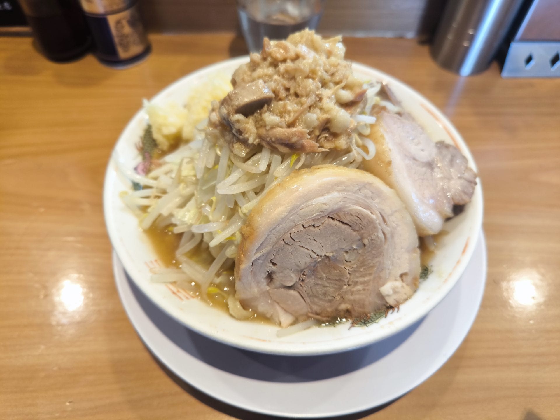 ずっと気になっていたお店で、ついに行けました。まず最初に豚が美味しすぎてビックリしました。野菜も麺もスープもちょうど良く、上品な二郎系といった感じでしょうか。小でこの豚の量で900円は凄い!