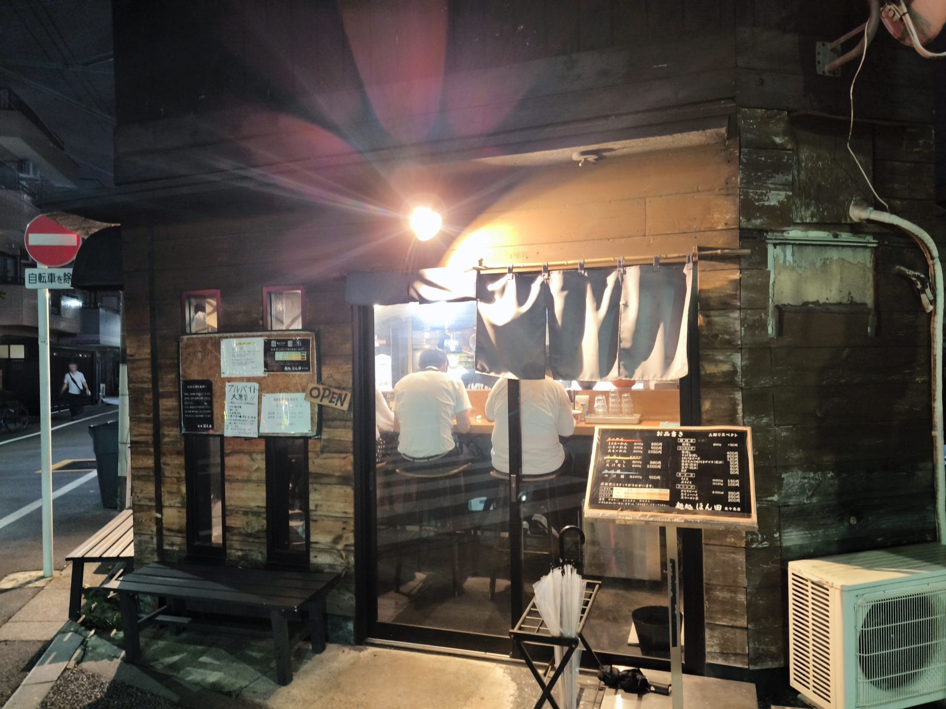 店内で食券を買ってから最後尾に接続すればOKです。お店の前にはベンチが2つあるので、助かります。