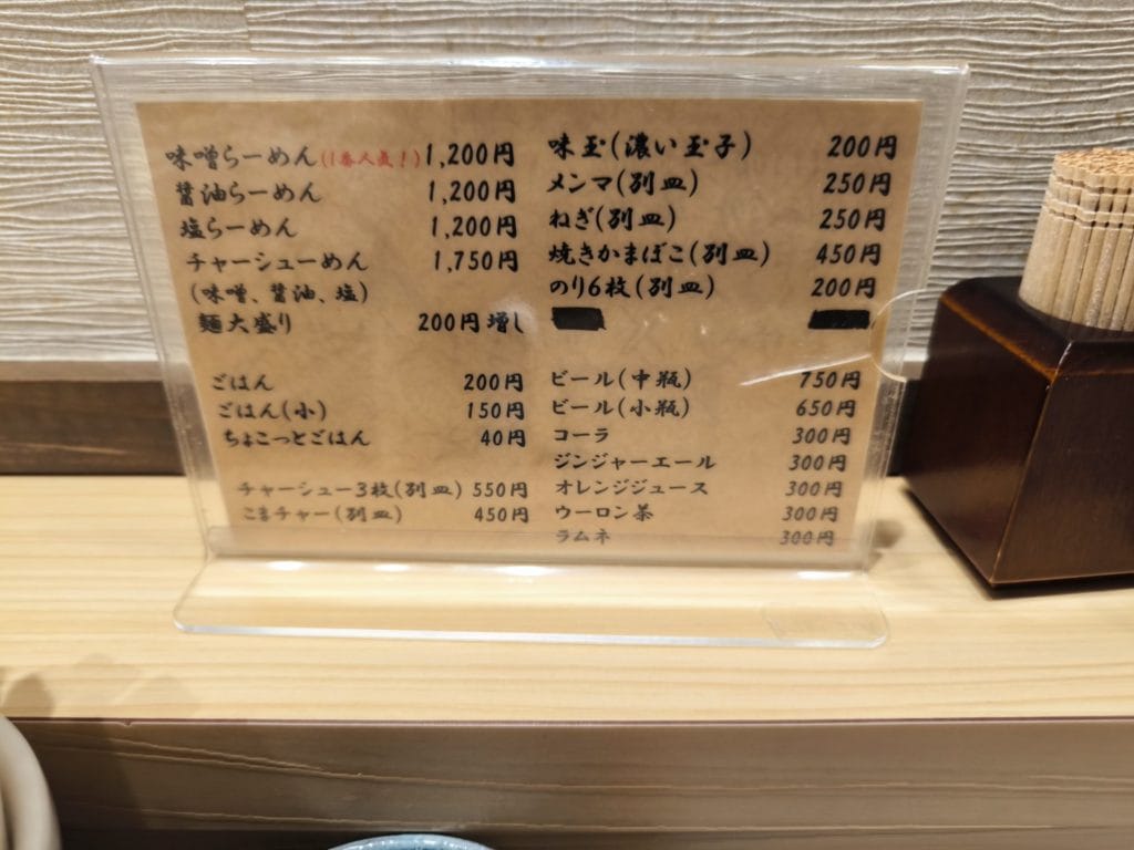 麺にはすみれ同様の西山製麺の麺が使われており、これぞ札幌味噌ラーメンといった感じです。あ、ちなみに中の人は札幌産まれなので、味噌ラーメンは結構食べてきましたが、ここの味噌ラーメンは本当に美味しいです。メニューには味噌ラーメンだけでなく、醤油ラーメンや塩ラーメンもあります。