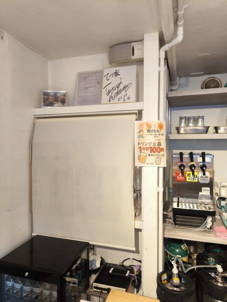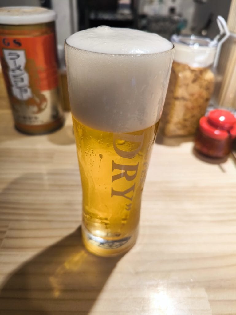 入口すぐのカウンターの3席は暑いからか、最初のドリンクが100円で買えます。自分は運良く?1番のカウンターになったので、ビールを100円で頂きましたが、ラッキーでした。まぁ、むちゃくちゃ暑かったですがねw